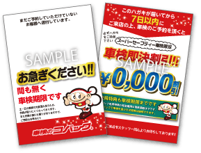 次回車検・点検時期が近づきましたらハガキ、お電話でご案内させていただきます。