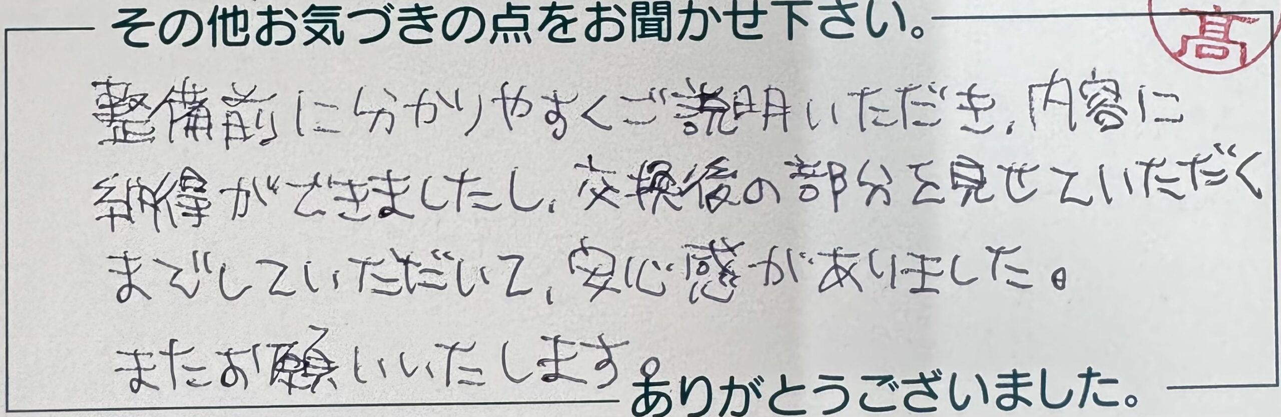 • 私どもも安心していただけるような内容、接客を心がけております 次回もよろしくお願いいたします😊